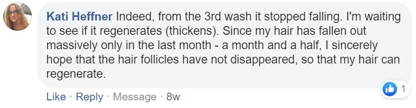 I'm very satisfied with this product. The hair loss has decreased significantly.